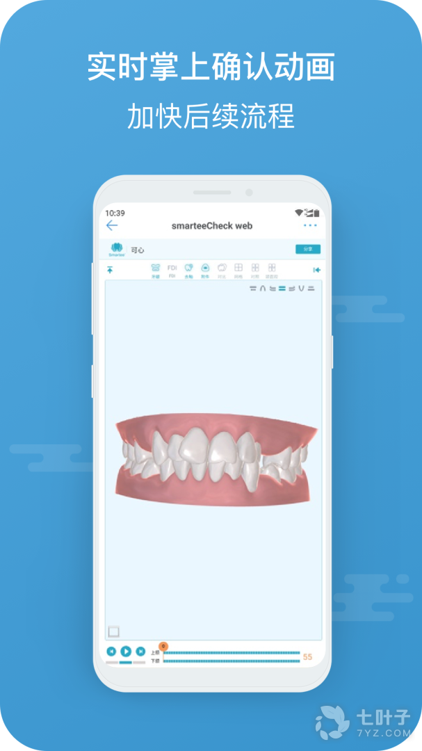 6、动画实时确认:医生可在动画方案定制后第一时间查看动画,线上进行动画反馈,大大降低了时间及人工成本,提高方案完成效率