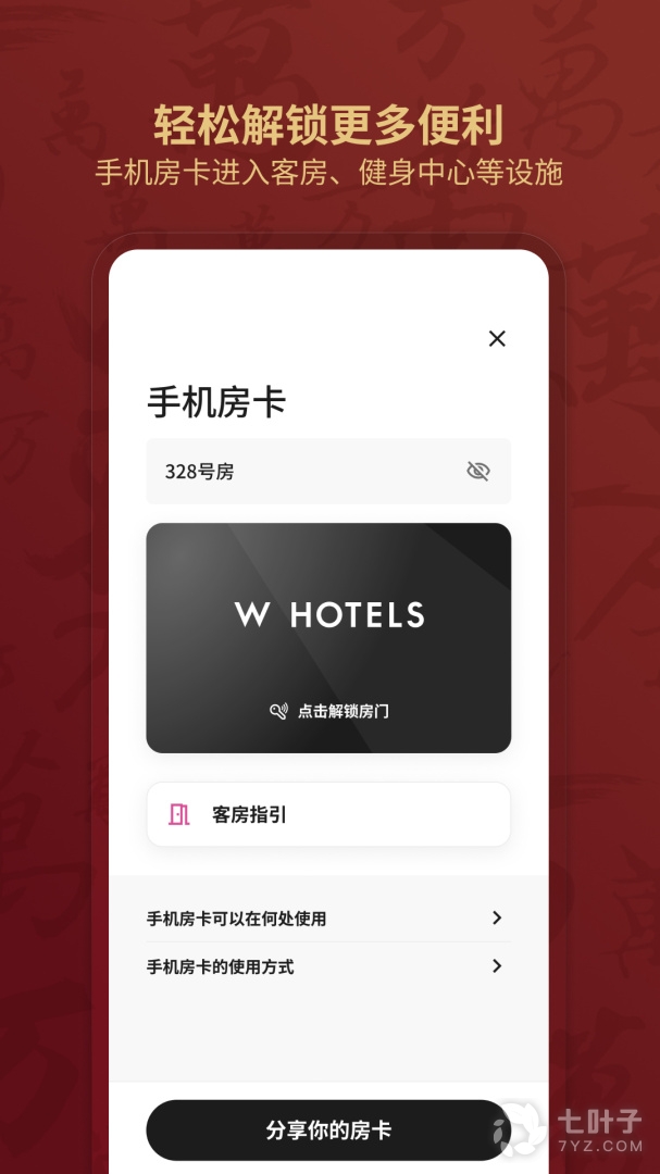 3、可在制定的酒店通过手机来进行开门,让你的手机更智能