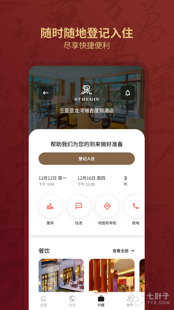 - 账户活动:随时随地查看账户余额、晚数、积分和活动历史