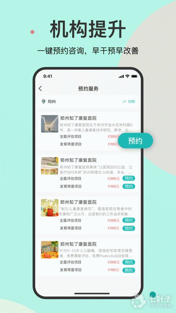3、知了康复下载,一款专注于儿童发育迟缓早筛与康复训练的综合平台,来知了康复一键预约咨询,专业成长测评,助力孩子健康成长,个性化课程针对性训练,了解一下