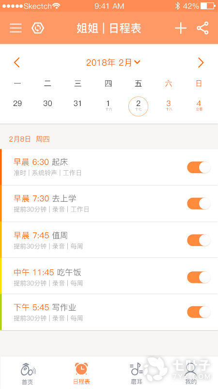 6、设置孩子每天的作息时间表,APP就会自动的对孩子进行提醒