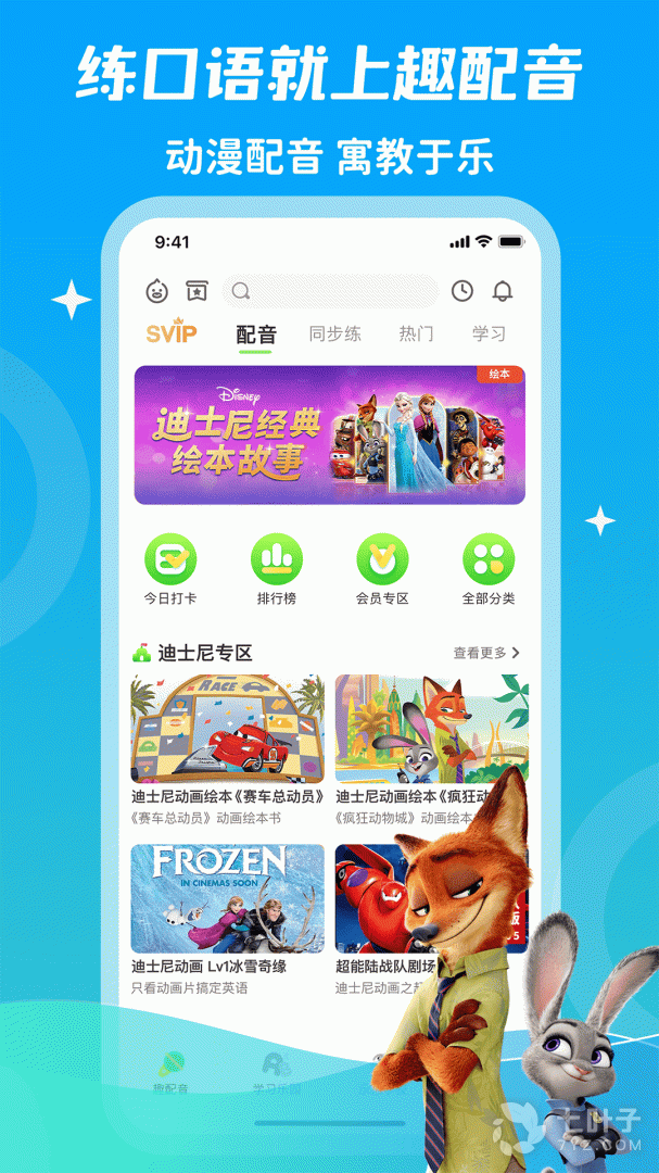 3、同时可以的英语学习的软件,通过配音的方式的来学习学习英语,更重要是还能够培养的孩子的口语能力,提高自己的口语水平,非常的便捷,有需要的话就来点击下载吧