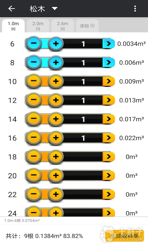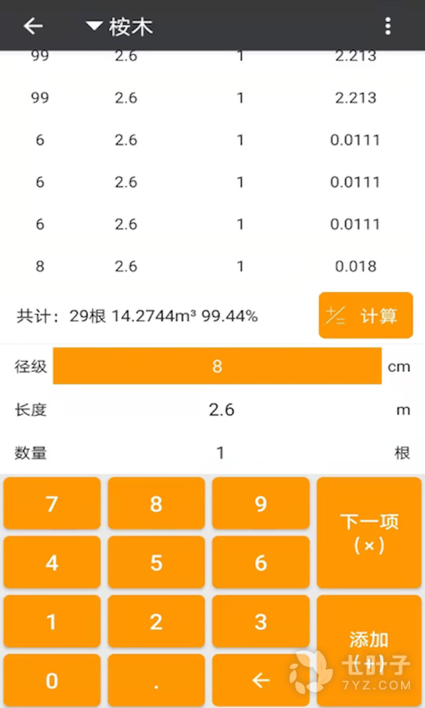 材积计算器专为用户提供原木材积计算所开发的软件,不但能计算锯材材积,材积计算器还能计算成本以及凯润。还能根据事先设置的单价自动计算出木材价值和计算木材材积。