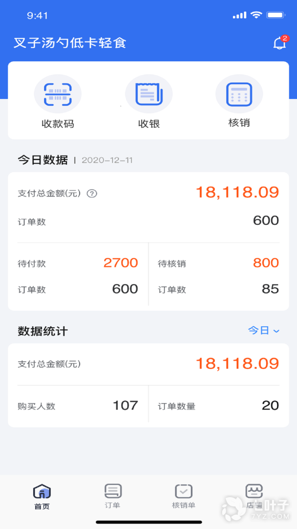 1、可以很详细的了解到店铺每天的销售业绩,订单数、支付金额、待核销、购买人数等等都可以在上面看到,数据统计非常全面
