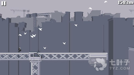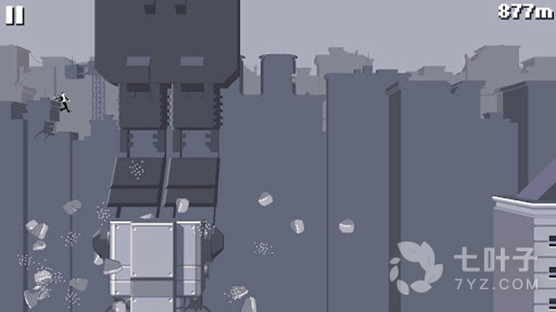 3、玩家需要控制主角在各个危险的大楼之前奔跑,从而逃离危险的境地。游戏整体式带一股黑色幽默的味道,灰黑的配色好像都在寓意着人类文明的终结。游戏玩法简单,跑的距离越远越好,不过有一些深层次的东西能够让人思考