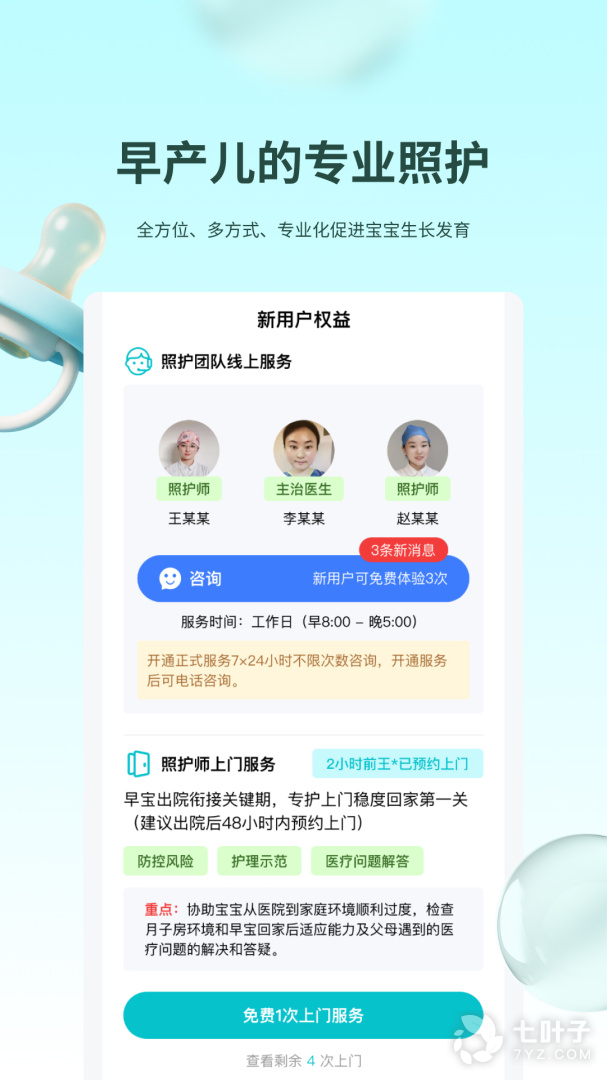 2、袋鼠照护,这是目前很多小伙伴都在使用的早产儿照护平台,这里提供的服务非常多,用户可以在线选择自己需要的服务,了解很多早产儿照护的相关知识,如果家里有早产儿,将是一个不错的工具