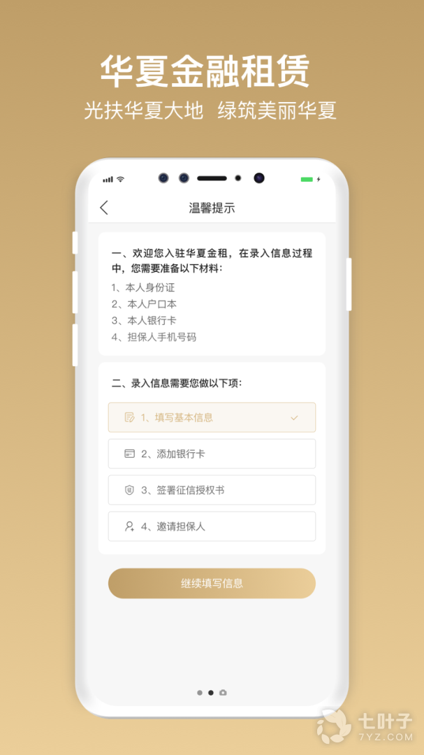 华夏金租是一款专门的金融租赁app,能够为广大的需求者提供融资租赁服务,用户可以随时随地在此申请融资租赁服务,能够随时查询账户余额、收益和租赁业务的办理进度,如果租赁成功的话即可获得平台的公告提醒,用户可以及时阅读这里的最新消息。而这个金融租赁app支持用户一个人自助式租赁,在手机端即可完成融资租赁的全部环节,即使没有专业人士的指引也能轻松的完成操作,不仅速度快而且效率高,是金融租赁服务的首选。而邀请担保人的时候可以在此自己填写担保人信息,能够以拍照功能上传担保人户口本,总之非常好用,赶快下载吧。