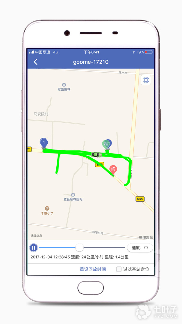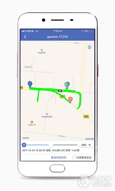 2、轨迹回放:支持回放180天内行车轨迹,回放过程中可显示车辆当时的车速、方向、停留时间等。