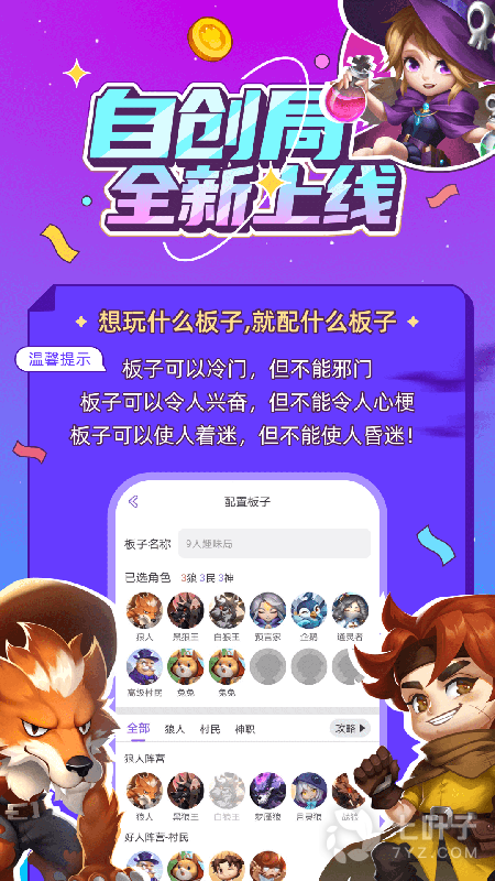 超丰富的狼人杀角色,超多狼人杀板子,更有休闲区娱乐房可嗨唱、可唠嗑。可通过狼人杀玩法进行交友破冰,更有师徒、CP关系、俱乐部等一路暖心相伴。