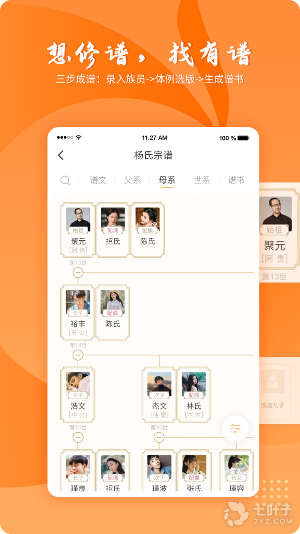 2、百家有谱,手机家谱、族谱软件,提供电子家谱、族谱,在线查看,轻松修改,为用户带来更便捷的家谱、族谱制作服务