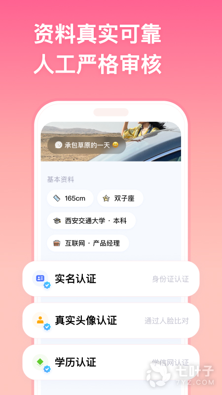 牵手,让你能放心恋爱的APP,只认识和你一样真诚,想恋爱的人。“每一颗心都值得被认真对待”的理念向和你一样优秀的人提供可靠的婚恋机会。