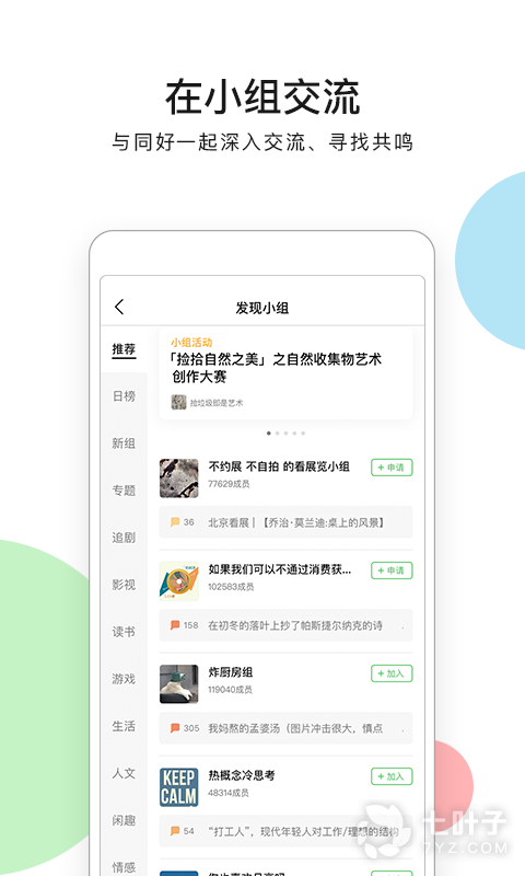2、豆瓣分享给大家!这是专为大家提供影评、书评等各种兴趣讨论的手机软件,大家可以在这里发布自己的个人观点,也可以结识到更多和你观点相同的用户,大家感兴趣的话快下载软件使用起来吧,你的主页上发布的动态都是可以自由地去设置的,设置成你最喜欢的风格样子
