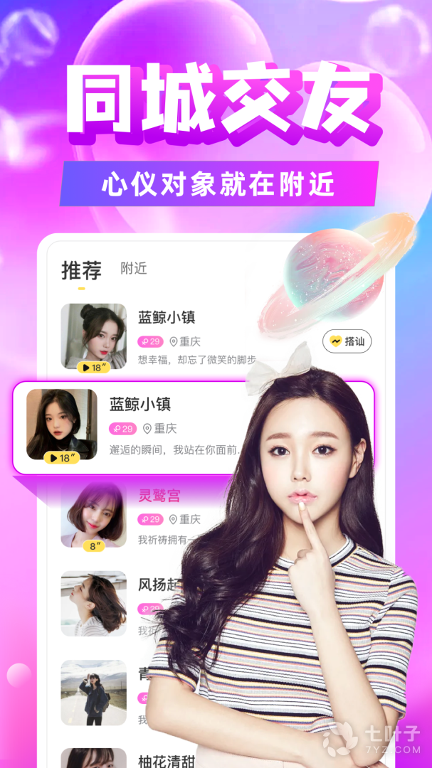附近陌约是一款聊天交友约会软件,找到适合你的她、心动的她、随时聊天,速配秒约附近单身的TA!同城单身约会、交友、闲聊、找对象、恋爱……附近陌生人交友一站式供应
