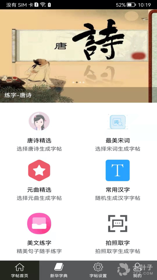 2、该软件上为用户提供了海量优质的钢笔字帖,并且包括了唐诗、宋词、元曲、汉字等多种内容,用户可以选择自己感兴趣的内容进行打印,然后就可以轻松的进行字帖的临摹了,可以帮助用户可以写出一手好字