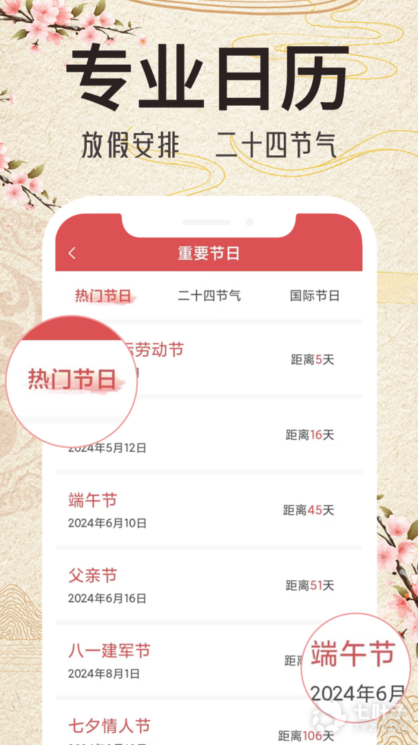 专业详细全面的日历信息,锦鲤万年历集节日节气、黄历宜忌安排于一身;
