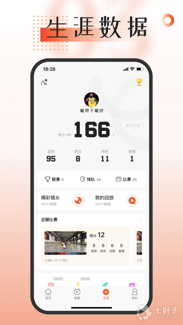 统计:通过数据、图片、视频记录着你的篮球生涯,查看着更加精准的数据内容