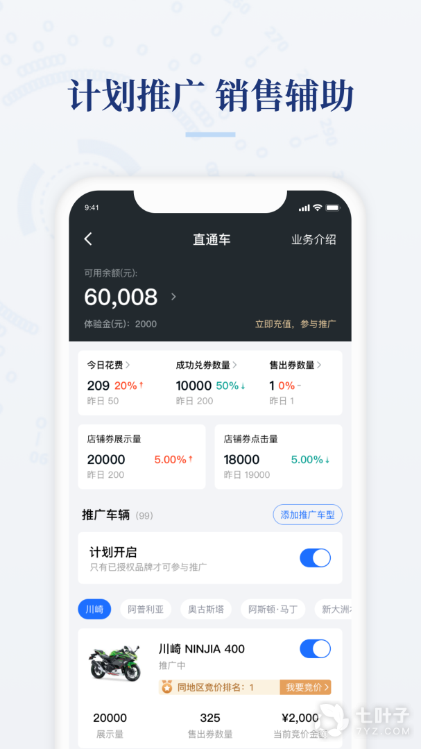 2、及直通车可以看到自己可运用的金额,能够快速的推广自己的车辆,可以添加推广车型,非常便捷。