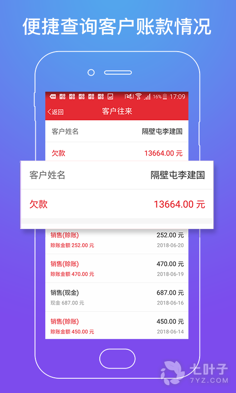 4、客户管理快速查询客户信息,客户欠款还款情况清楚明了,清晰查看客户账款明细