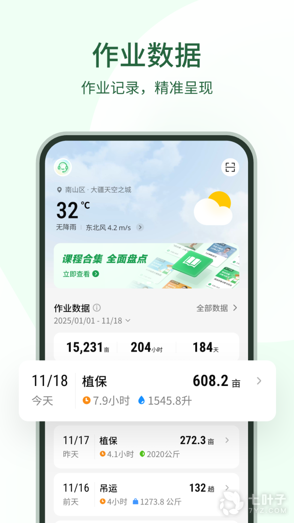 大疆农业服务平台可精确记录多种模式下的作业数据,当前航线、作业进度等详细信息可通过平台进行实时查看,远程管理更加轻松。