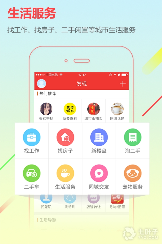 3、生活服务:找工作、找房子、二手闲置等城市生活服务