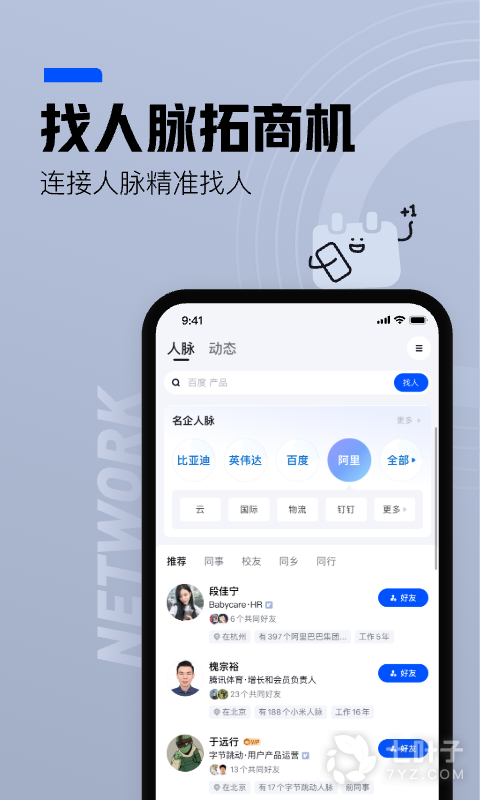 快速发现“新同事 & 新校友”,人脉页新增智能推荐,主动帮你发现公司及母校的新人,一键添加,快速拓展你的职场“朋友圈”~