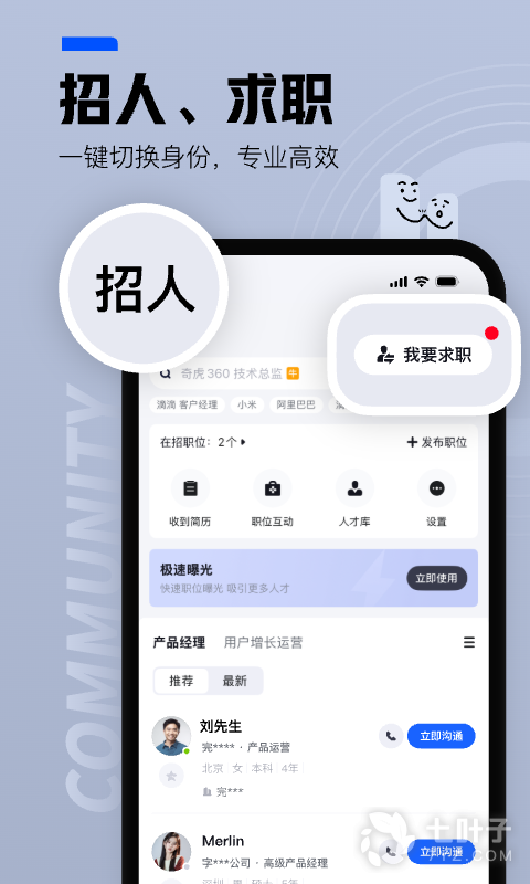 1、脉脉,是一款人脉求职应用软件,作为管理者,你可以在这里找到你需要的人才。作为求职者,你可以在这里了解所从事行业的情况,认识更多志同道合的朋友
