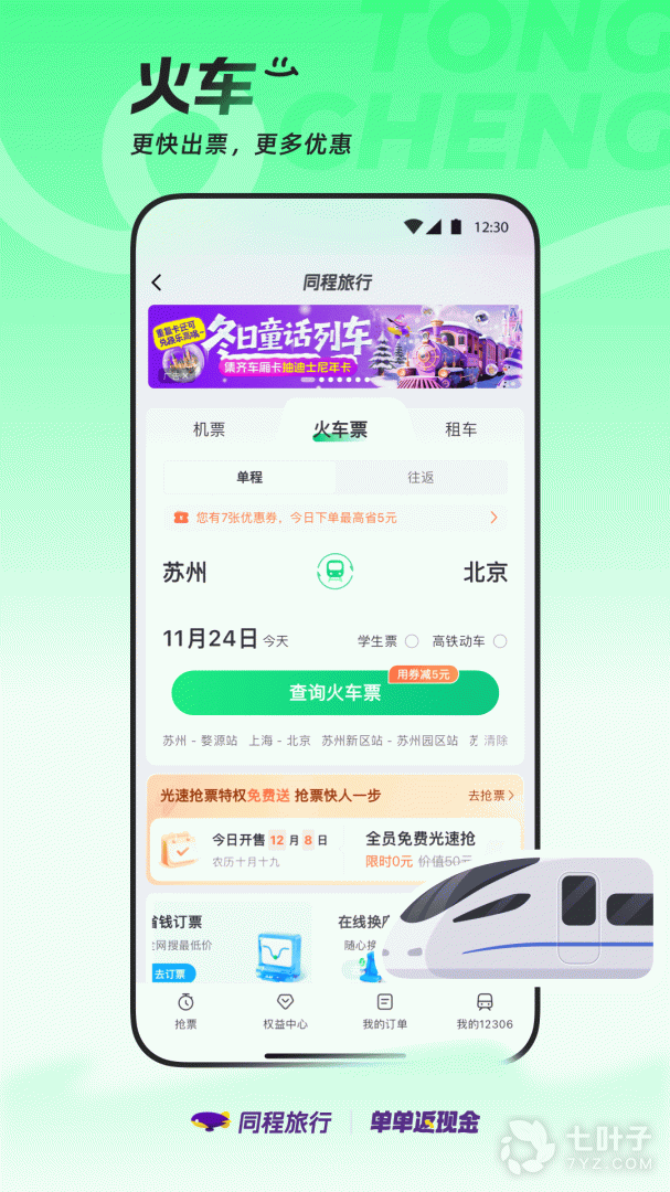 【火车订票】光速免费抢,第2单1折起