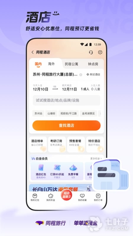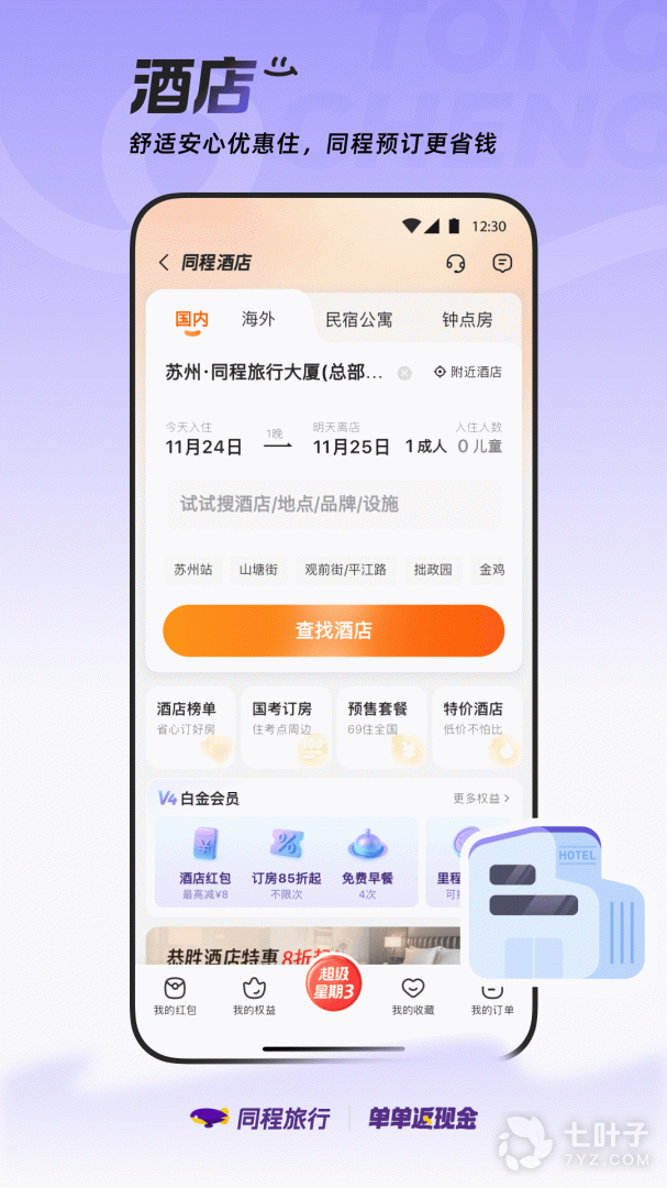 2,酒店:支持国内海外百万余家酒店预订;领大额礼包,享优惠低价,兑专属权益;