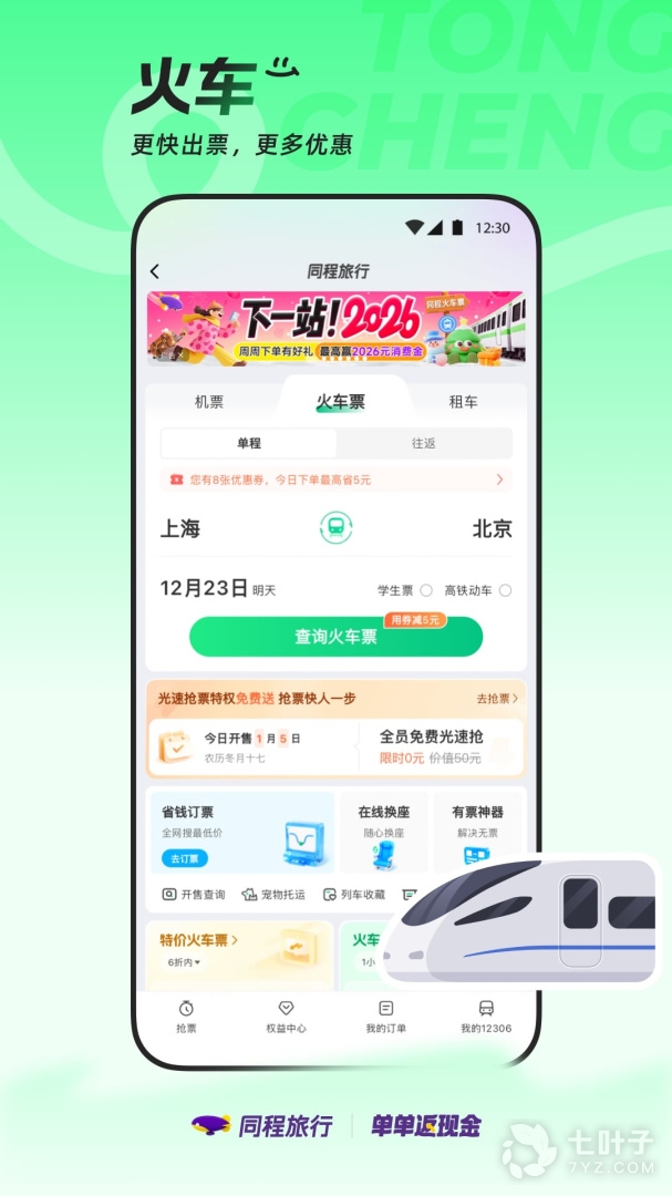 火车订票 | 光速免费抢,第2单1折起