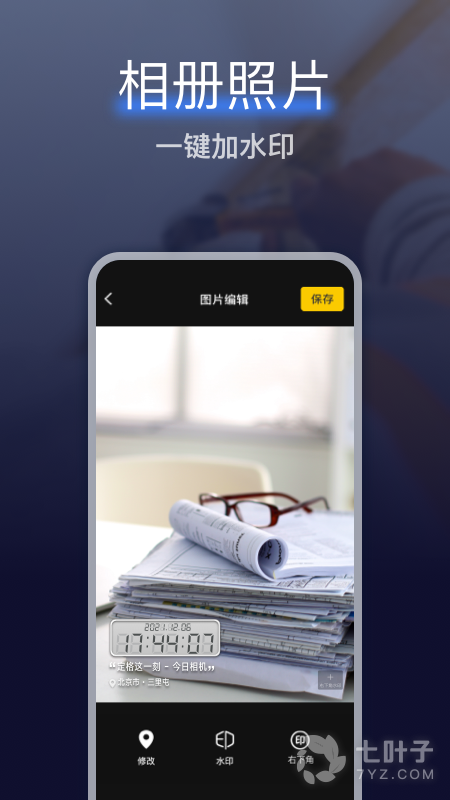 1、致力帮助用户为照片添加各种水印。软件拥有丰富的水印类型,并且支持自定义设置,可以更改时间、和地点,这样就可以很好的满足打卡需求。软件适用的地方有很多,包含了工作质量记录、考勤打卡、物业工作记录、建筑工程管理、外勤拍照、品牌宣传等