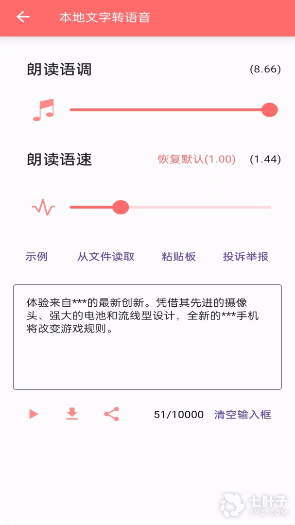 1、文字转语音这款软件,整体上的使用还是非常不错的,不管是在语音转换上、还是语速等等都非常的灵活