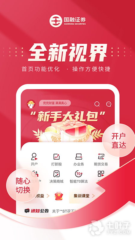是国融证券为广大投资者全新打造的专业化综合金融交易终端,为您提供7*24小时迅捷开户、实时的沪深港市场行情、快速便捷的股票交易、实时的财经资讯、丰富多元的理财产品,让您全面感受理财新体验。