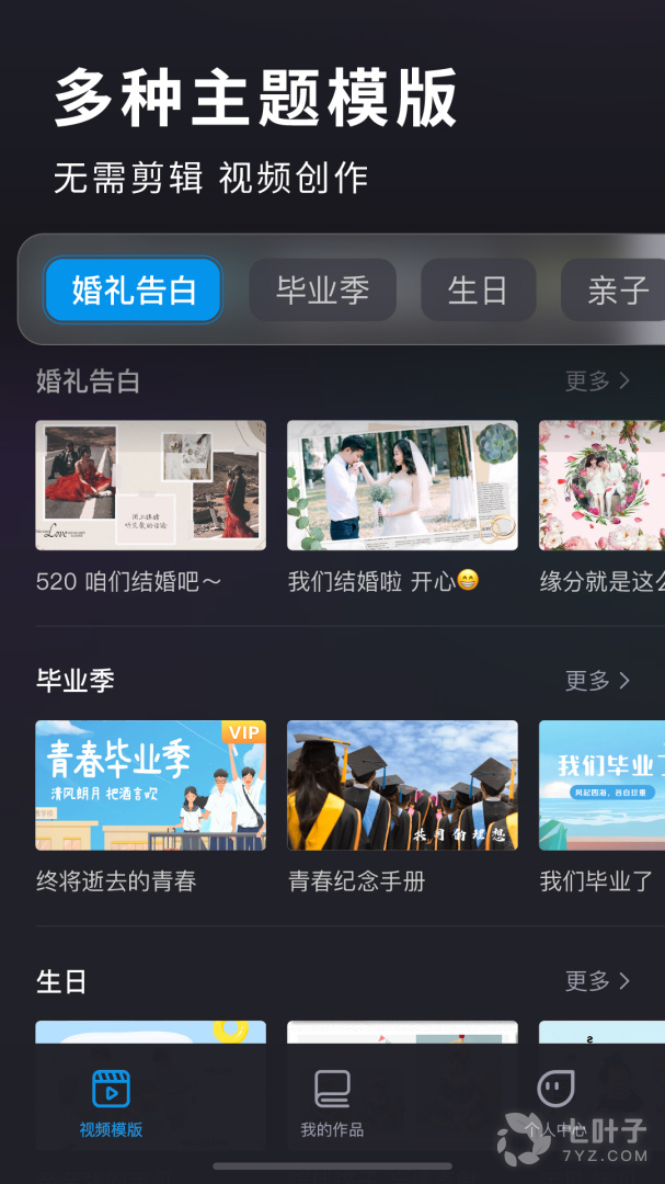 【婚礼相册请柬】【音乐电子相册】【照片影集MV】【生日节日祝福】【家庭儿童亲子】【企业宣传推广】 等海量模板视频等你制作!