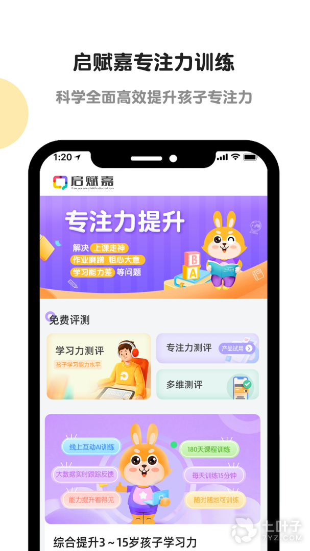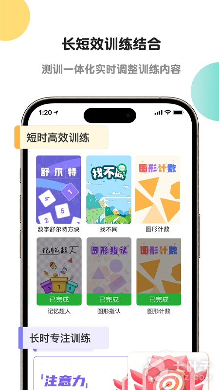 专注力训练,是一套完整的针对3-18岁孩子的专注能力、观察能力、记忆能力、逻辑能力、计算能力的有效训练工具,App产品根据儿童认知发育的规律和特点,为不同年龄孩子提供不同训练计划,以孩子的测评结果数据为指导依据,