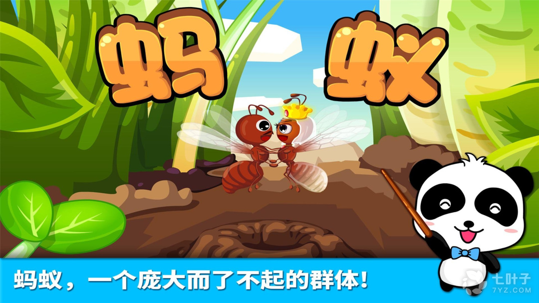 1、是宝宝巴士旗下的早教应用,新推出的一款儿童认知游戏。在这里宝宝们可轻松扩展知识,了解蚂蚁习性等,喜欢的快来下载吧