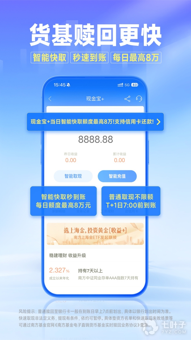 2、方便基金信息一手掌握;超级现金宝随时取现