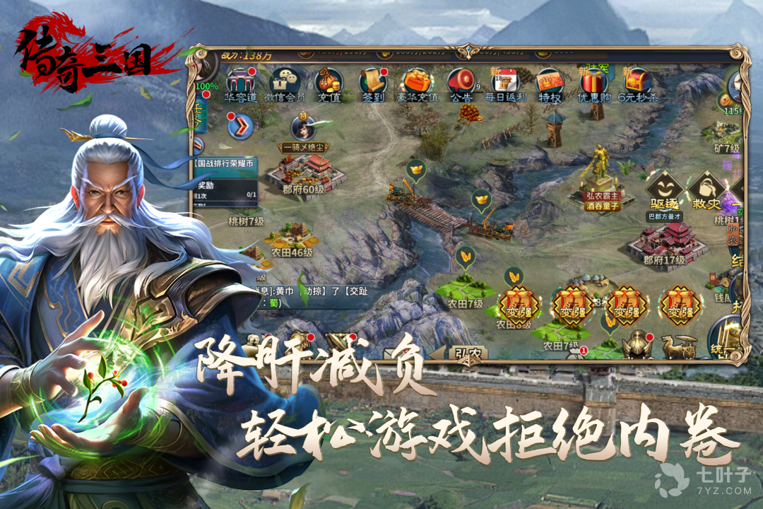 2、传奇三国带你进入一个不一样的传奇世界,以三国元素为背景加上全新的玩法带来不一样的指尖体验,海量副本强大的boss加上各种武器装备道具以及华丽的特效等等应有尽有,玩法多多还支持放置挂机升级