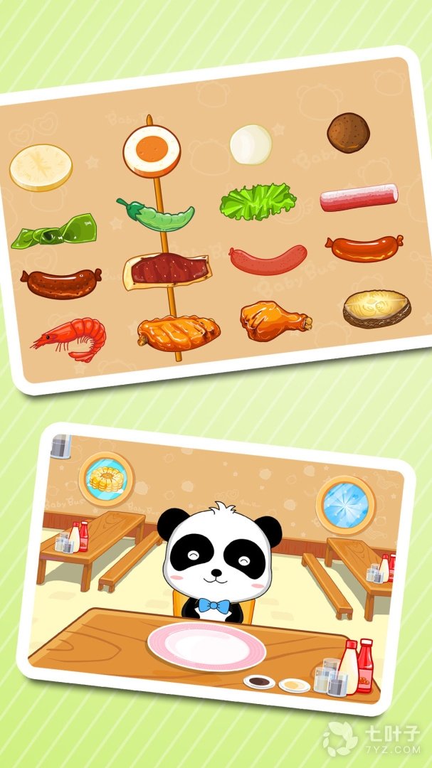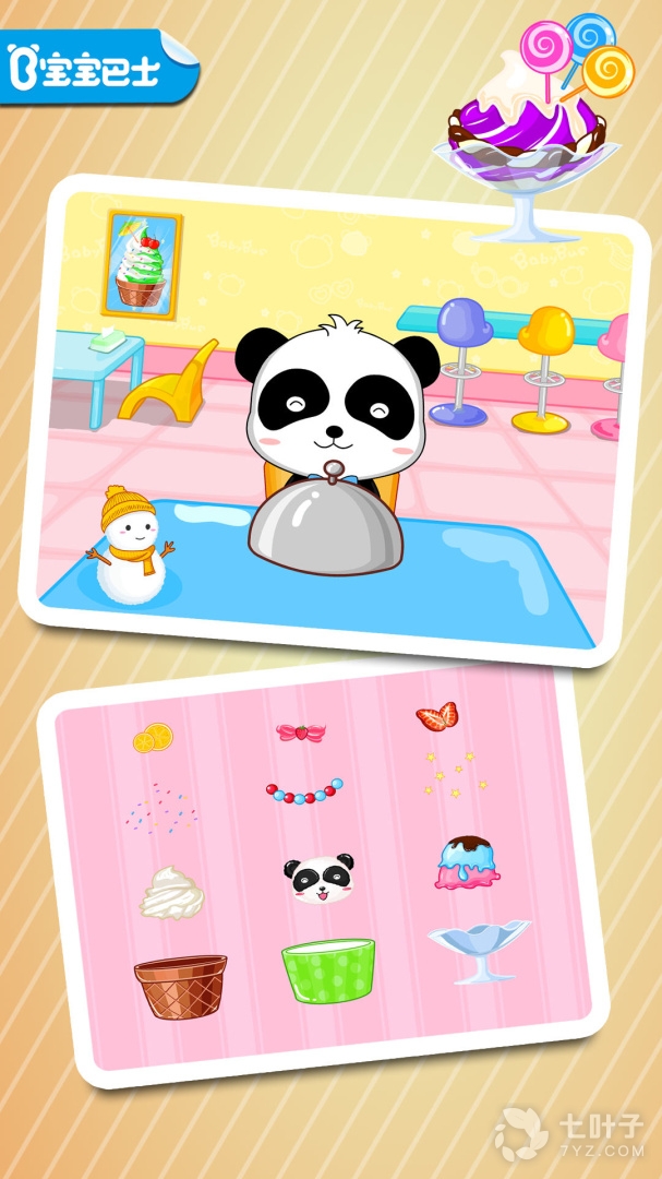5、宝宝美食街是宝宝巴士为幼儿贴身打造的一个美食类儿童益智app。通过模拟经营美食街的餐厅、商店等,运用简单的操作,让宝宝搭配出自己喜欢的美食