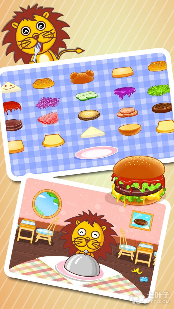 1、这款游戏还是一如既往的有趣,孩子们来到这里开始制作美食,不管是汉堡、甜品还是烧烤都可以,孩子们自由的制作,简单有趣的小游戏,精致简单的卡通画,开发孩子智力,认识更多食物,有适龄孩子的家长可以来下载这款宝宝美食街