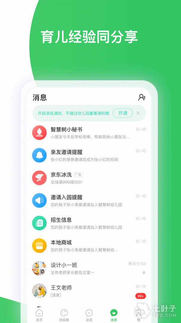 5、跨时空,实时了解宝宝在幼儿园的动态,可以接受园内的通知,更好的配合学校工作