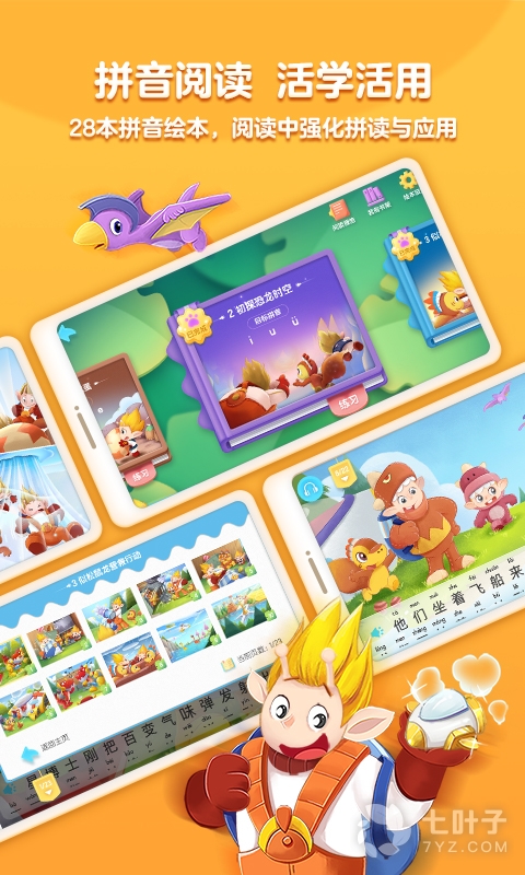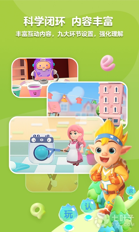 洪恩拼音是一款儿童拼音发音点读启蒙工具,该软件结合拼音音形设计丰富的创意交互场景,包括真人老师与动画教学相结合,玩、认、调、读、说、拼、练、写、测9大环节,让孩子关联记忆高效学习,其中自主研发专属儿童的语音测评系统,利用科学易懂的发音规则讲解,帮助孩子有效校正发音,敢拼敢说。不仅如此,软件还为每个字母创意定制拼音儿歌,好听又好记,帮助孩子有效地区别拼音与英文字母,更有28本精美拼音阅读绘本,全面展示拼音拼读组合形式,在阅读中强化应用,让孩子趣味学拼读。另外洪恩拼音师资力量强大,不仅有着顶级教研,而且与优秀的制作团队经过三年的时间打造而成,更好的解决孩子学习的问题,从而会针对儿童在学习过程中遇到的重点、难点、易错点,如书写规则、标调规则等进行深度解析和专项训练,想让孩子赢在起跑线上,那么这是一款必不可少的启蒙工具。