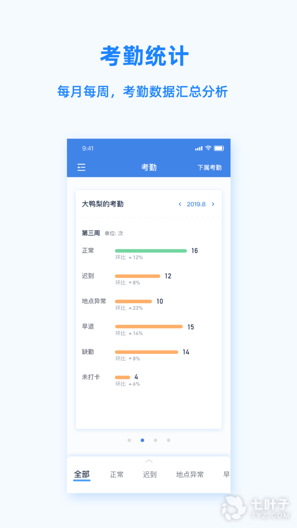 1、用户可以在软件上在线查询自己的考勤情况,不仅如此,您也可以在软件上设置今天的工作目标,以及精确分配您的工作时间