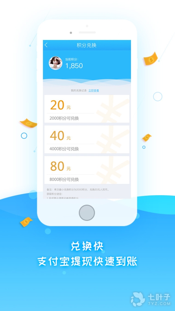 5、积分多,兑换方便,到账更快。2000积分即可申请,低限制收益更多