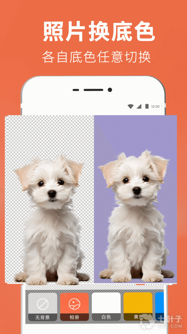 支持更换证件照底色,多种背景色可选;还支持自定义背景,选取自己喜欢的照片作为背景。