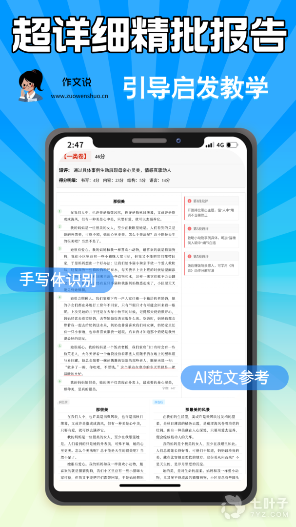 4、智能批改:作文说采用了智能的作文批改模式,只需要几秒钟你就能获取对应的批改点评了