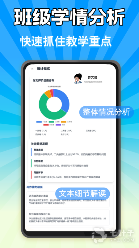 1、提供作文评分和优化建议,解析作文结构和错误,让学生了解自己的写作弱点和语言表达问题;