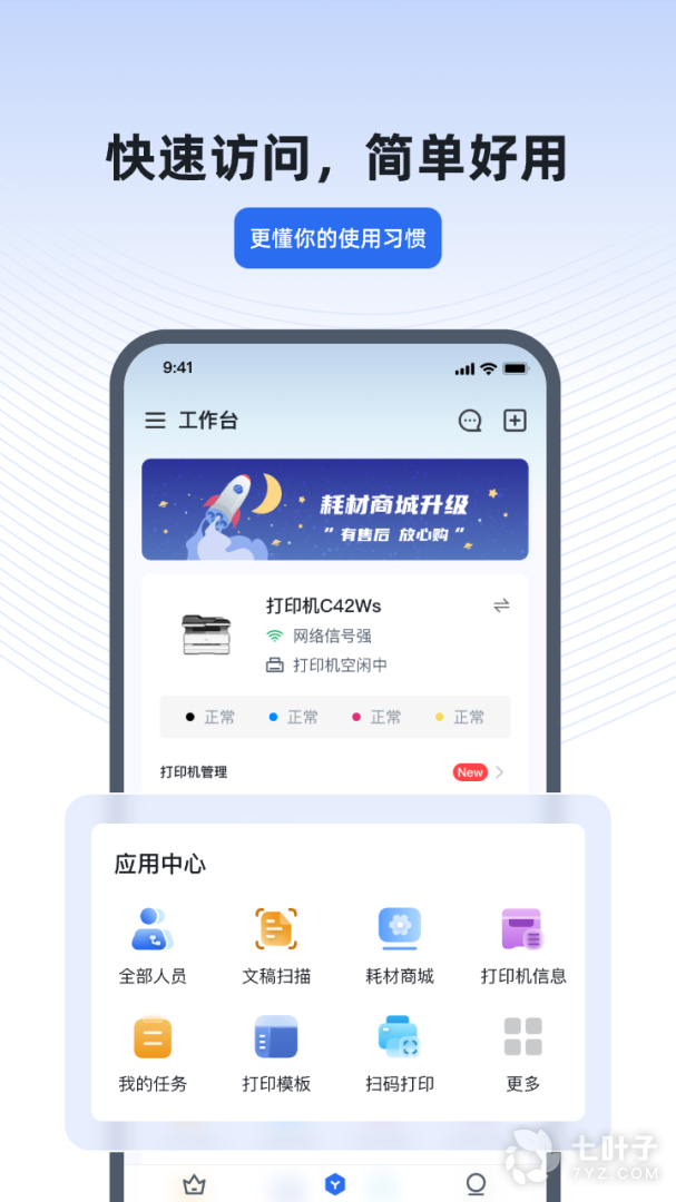 3、得力e+是一个全新的平台,可体验工作与生活之间的轻松联系,高效的办公室轻量级办公应用程序,全面的助手,数百种用于建立耿志辉办公室的设备,全天候的贴心服务,以一方面为您提供简单而强大的助手设备,大大提高办公效率,大大节省了用户的时间
