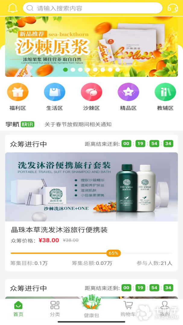 3、宇航商城是一款优质的购物软件,拥有海量日用、沙棘等商品, 品类齐全,支持自定义搜索,还有福利区栏目每日更新,福利好物限时购买,超多超划算的优惠活动不定时举行,让用户买到优惠产品,满足用户个性化生活购物需求