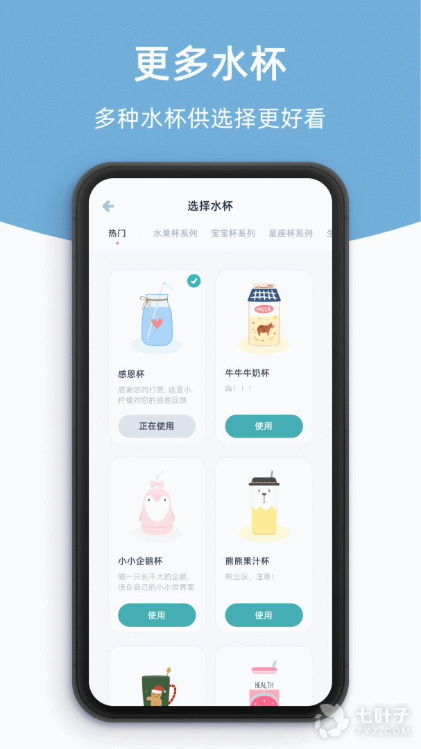 2、喝水提醒 - 准时提醒每次喝水不错过, 可以自己定义喝水的时间 / 提醒的声音 / 提醒的文字 等等, 让喝水变得有趣而丰富