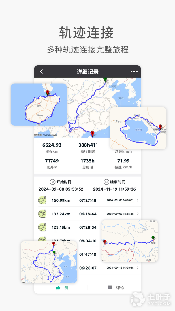 1、记录骑行记录,各种不同类型的骑行的记录都可以让用户在这里随意的体验